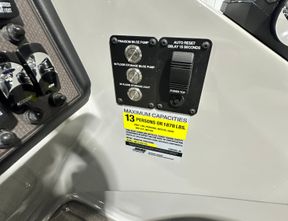 Seating Capacity14Dry Weight5,500#Total Ballast5,400#Draft36"Fuel Capacity81 GallonsOverall Length27' 9.5"POWERED BY MERCURY 200 (V6) PAS/DTS WITH ACTIVE TRIM Center walk-through - dual helm seats with luxury seating Halo Power Tower Bimini ... READ MORE